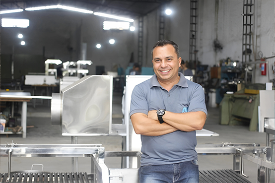 Apesar disso, decidimos permanecer na cidade e, após um período, mudei de foco. Saí da revenda de máquinas e passei a fabricar meus próprios produtos, pois percebi que o meu cliente precisava de algo sob medida e já não se satisfazia mais com os equipamentos prontos. Então, deixei de revender e comecei a fabricar e vender apenas os meus produtos. Desde então, nossa empresa foi crescendo, e graças a Deus, hoje atendemos não apenas a área de alimentação, mas também o setor hospitalar, uma área que me traz muita satisfação.